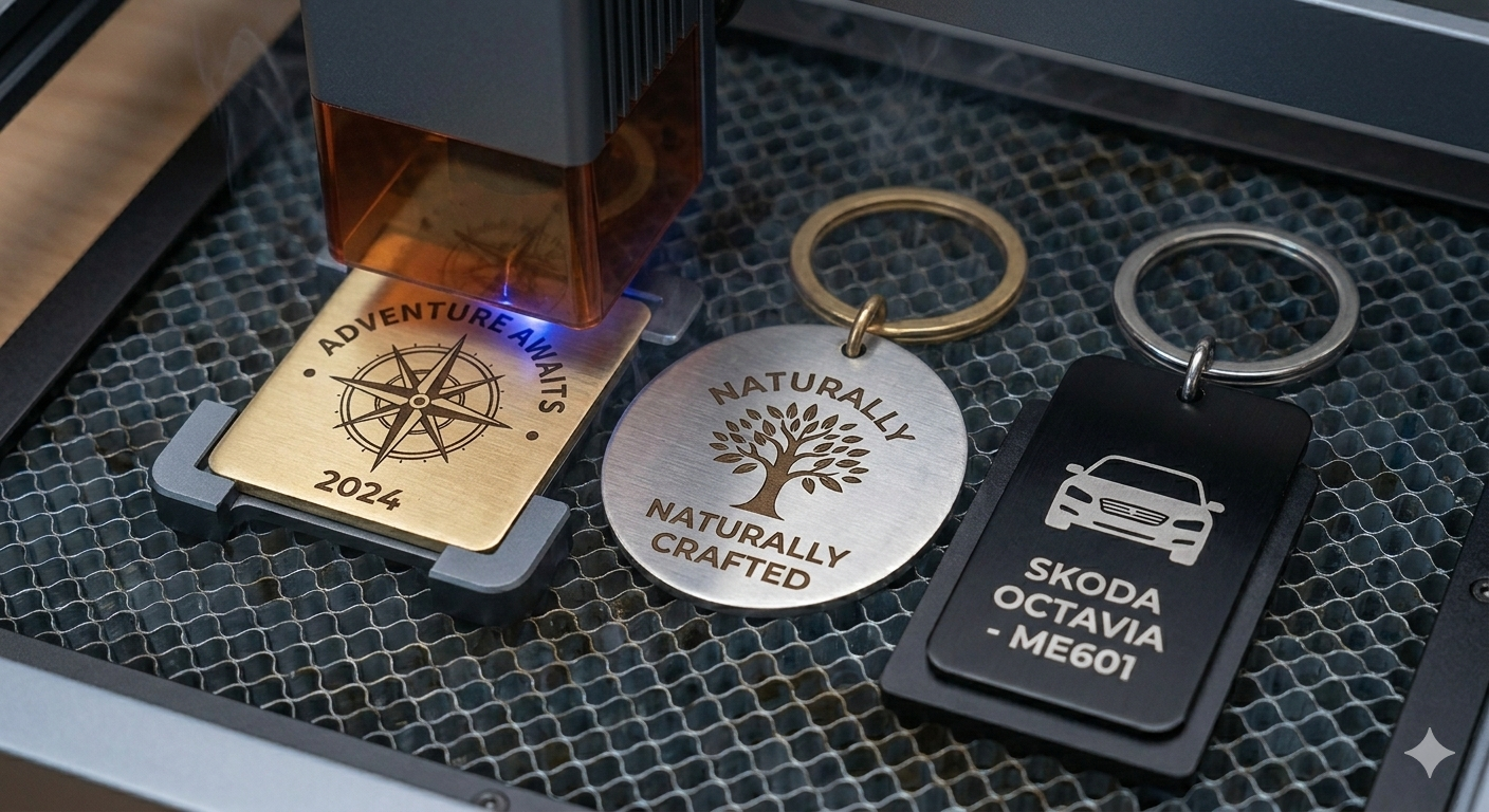 Ve výrobě používáme moderní laser Xtool F1 Ultra, který umožňuje gravírování kovu, dřeva, plastů a dalších materiálů s extrémně vysokou přesností.