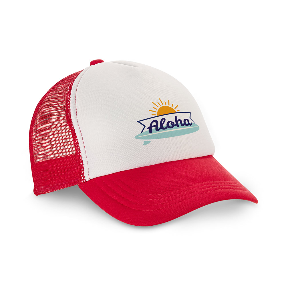 Kšiltovka NIKOLA z polyesteru a síťoviny, s nastavitelnou plastovou přezkou. Díky potisku vlastním logem uděláte z obyčejné kšiltovky neobyčejnou!