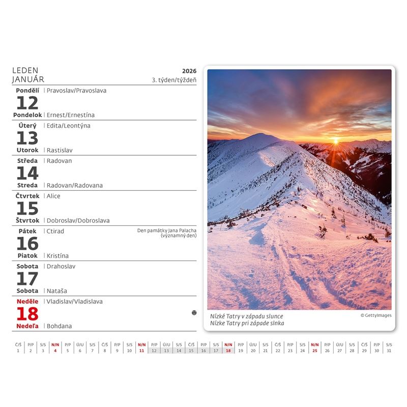 - České a slovenské týdenní jmenné řádkové kalendárium