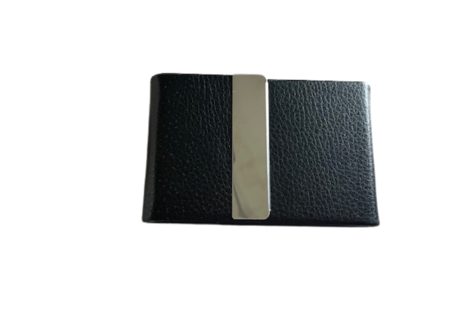 Luxusní pánské pouzdro na vizitky v koženém provedení černé barvy s elegantním obšitím a kovovým otevíráním uprostřed. Velmi pěkný detail, možnost vložit 15 až 20 ks vizitek, váha 60 g, rozměry 9,5 x 6 x 1,5 cm, materiál kůže PU / kov.