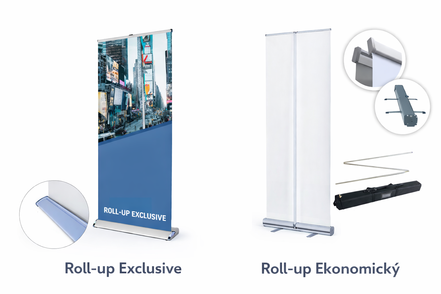 Pro rollupy nabízíme 3 typy kontrukcí (nosičů rollup plachty):